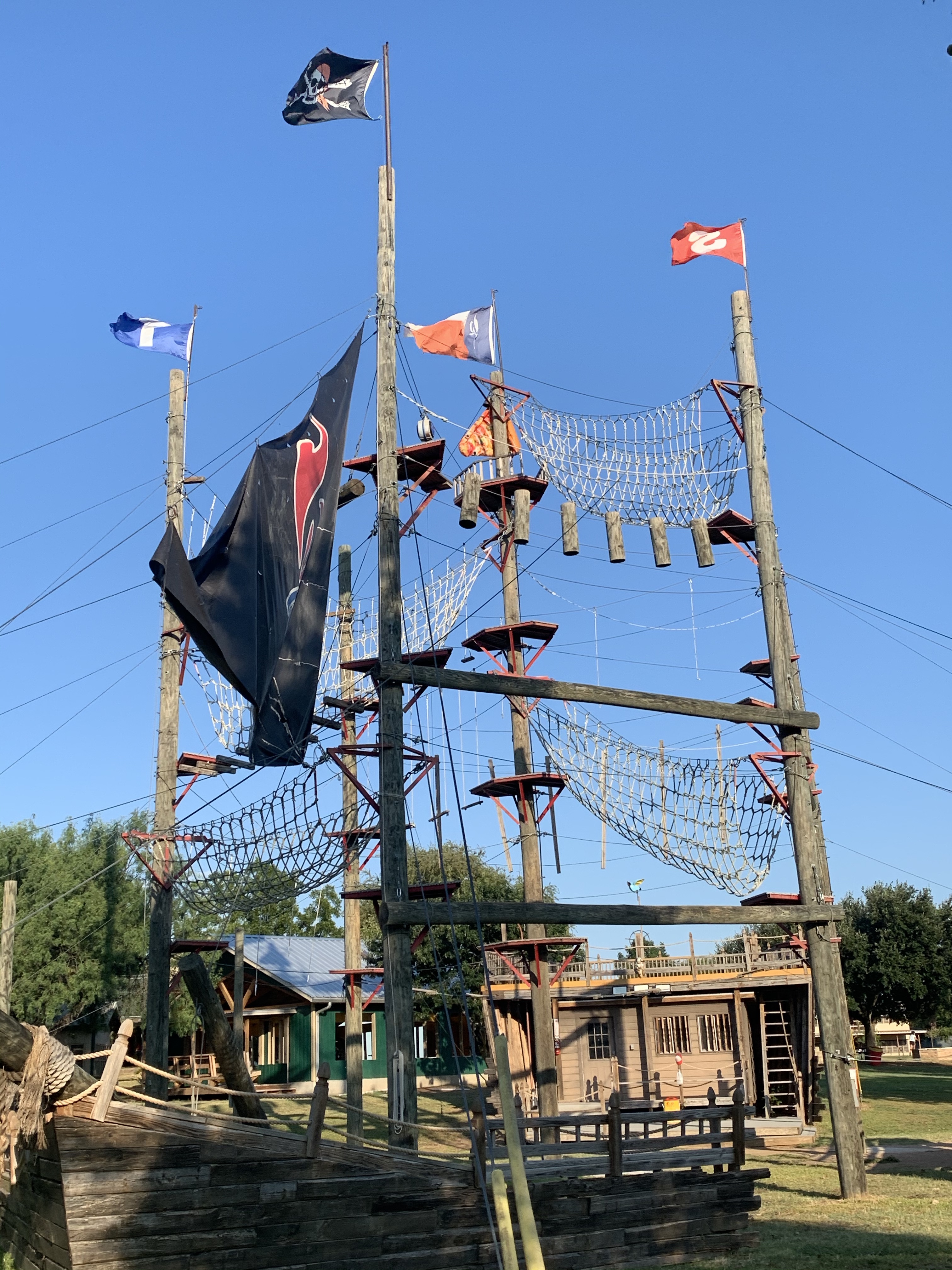 A third person did the only logical thing at that point, he climbed the Pirate Ship and affixed it like a flag.