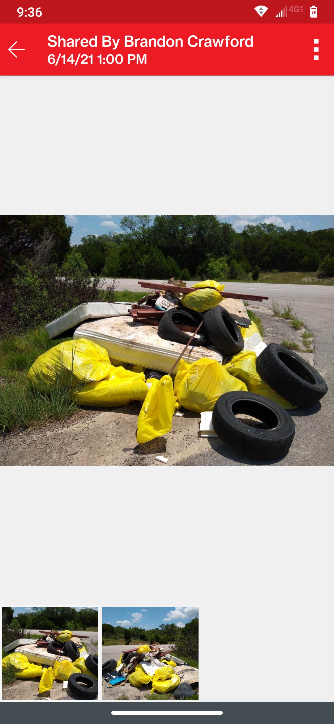It took over a month, but one of the city staff shared this photo with us. He was surprised by two things. First, he found our Senior Campers pleasant and hard-working. Second, he was shocked at the amount of detritus they accumulated. This photo was one of several.