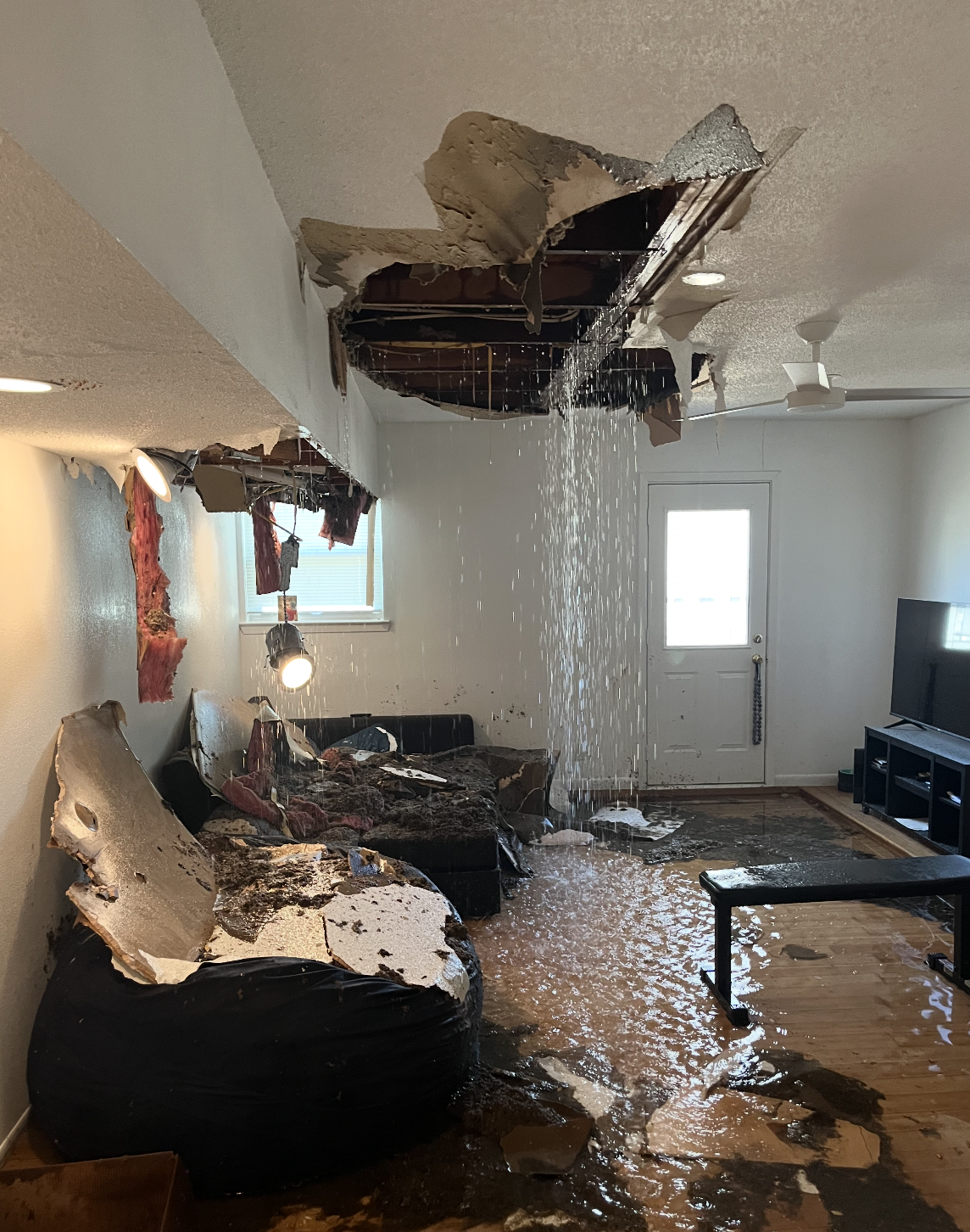 As I write this, my living room is still gutted. Inches of standing water have been cleaned up. Fans have been running. The ceiling is gone. Floor ruined.